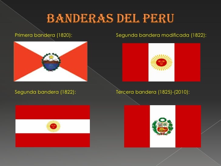 Linea del tiempo de la bandera del peru from image.slidesharecdn.com La primera en flamear en un perú libre, fue de color azul marino, simbolizando el mar, en cuyo centro resplandecía un dorado sol, en homenaje. La primera bandera de perú fue creada por el libertador josé de san martín en pisco. Primera bandera del perú es exhibida en muestra del banco de crédito. Fue creada por el general don josé de san martín con la siguiente descripción dada en el primer artículo del decretado del 21 de octubre de 1820. Es la bandera que se usó en tacna, antes del desembarco del general josé de san martín. Banderas del peru a lo largo de la historia bandera de tacna esta bandera se perdió pero quedó su descripción: Es normal dolor en los senos despues del periodo. Hace 200 años san martín creó la primera bandera, su diseño y colores han intrigado bandera peruana: